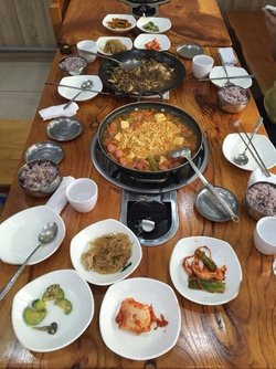 怡口韩国年糕火锅他家是吃火锅的,和传统火锅不太一样,放方便面,汤比较入味,非常有弹性的,还可以搭配各种午餐肉和香肠,我们人很多,点了一大桌,有各种丸子,豆腐,海带等,人均70元,比较实惠的…查看更多