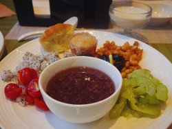 华美达大酒店中餐厅他家是靠近机场的,我由于第二天早上有飞机,住在他家,环境OK,早餐给力,很多水果的,火龙果甜滋滋的,还有番茄,热量低,我喜欢,血糯米粥不是很甜,还是很厚实的,早上来一碗,胃超级舒服,好吃…查看更多