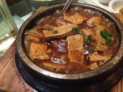 瀚博坊他家在五莲路,靠近张扬北路附近,环境尚可,比较实惠的,平民,我们点了铁板豆腐,最近吃的比较油腻,豆腐营养好,清肠胃,铁板烧的很保温,而且汤汁很多的,拌饭吃的超级香的…查看更多