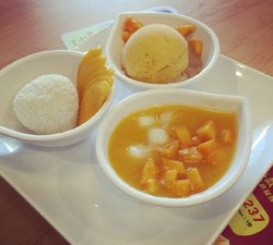 许留山家的甜品都是主打芒果系列的,芒之恋好吃的很,而且品种很齐全,里面的芒果都是超大颗的,口感很甜很新鲜,芒汁味道也很浓的,芒果冰激凌球口感甜甜的,总体来说分量都是少少的,味道杠杠的。…查看更多