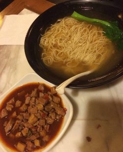 中午过来吃的辣肉面,生意还不错,在座位上等了好久才吃到,很惊喜的是,辣肉比我想象中的要多很多,而且味道还真不赖,特别嫩,辣味不是很重,微辣,一股脑的倒入面中拌一拌吃,整碗面条都变得鲜美起来,下次会再来的。…查看更多