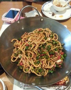 这家店的铁板茄子很好吃的,我到现在还记得,茄子是经过烤制而出的,所以口感上茄子外皮十分焦香,肉质细嫩,再加上酱汁的甜美微辣口感,非常赞。特色拌面也很好吃的,主要是酱汁带有肉味的鲜美感,面条无需过多的浇头也足以让人津津有味的享用了。…查看更多