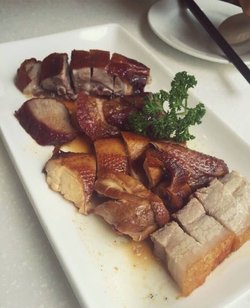 烧味拼盘每次吃都必点,虽然价格算是贵了点,但是味道很好啊,烧肉看着有点肥,其实吃起来口感不仅很嫩,外皮很脆而且汁水也很富足,烧鸭超喜欢鸭皮,鸭皮真的好吃到不行啦,超级脆口的,闻着味道就胃口大开,分量不算多。…查看更多