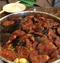 之前跟同事吃过黄记煌,觉得味道还不错,正巧某天在团购上看见我家附近的黄记煌再团购,马上团了一张叫着朋友去吃。店内环境不错,下午的时候人很多。我们要的是梭边鱼,点完没有5分钟服务员就抱着三种食物过来了。一个是酱,第二个是放在锅里的底料有洋葱、胡萝卜、红薯、芹菜等,还有一个就是梭边鱼了。服务员依次把东西放好,梭边鱼给的可真不少呀!先不刷酱,盖上盖子等开始冒热气了,服务人员过来把酱刷上,再焖一会就能吃了。满满一大锅!鱼很新鲜,肉质弹压,皮也是很Q的。团购包括的菜是冬瓜和大白菜,冬瓜不好吃,大白菜跟这个酱很配。主食要的扯面。服务员现场扯,面条劲道,包裹上浓浓的酱汁简直太美味了!虽说只有三根,但足足能扯出一大锅来。最后来张图,这顿吃美了!…查看更多