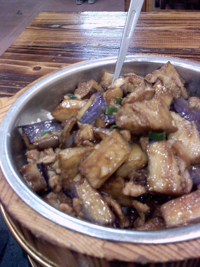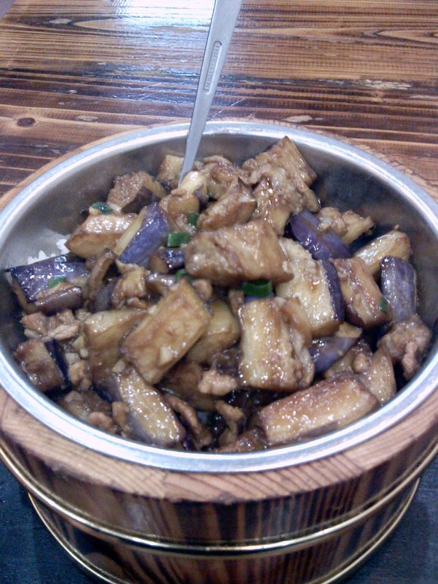 这家湘会木桶饭 最近成了我的饭堂,好多次一个人在家都会去帮村它,它家店子不大,一共是八张台,还加上2楼有两张,门口还可以加2张。环境就很一般了,不过这里的饭的确做得比较不错,特别是觉得它家炒得锅气好够,这天就点了一个茄子肉丝饭,10块,送一份酸豆角,一碗冬瓜汤,茄子肉丝的味道好不错,很够锅气,但可惜茄子不够淋,这是美中不足的地方。…查看更多