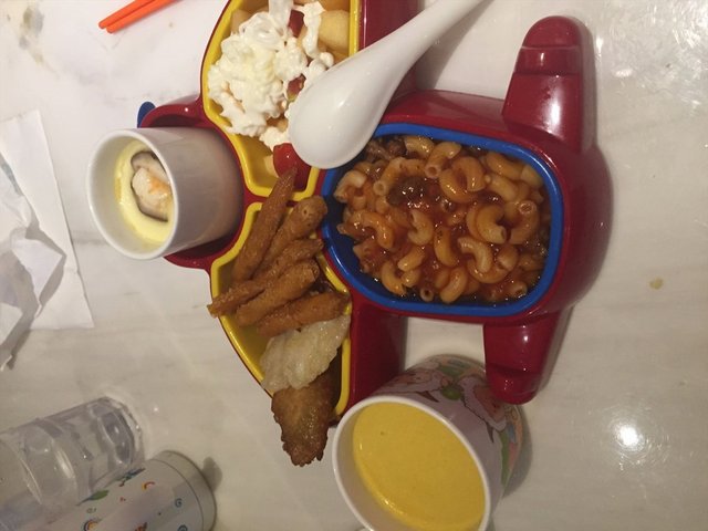 他家的风格还是蛮鲜明的,有点像机场的感觉,套餐做的也还可以的,而且有贴心的宝宝套餐,做的很可爱,是飞机的形状,包含了意大利面,果汁,鸡翅,水果等,宝宝吃的还蛮开心的。…查看更多