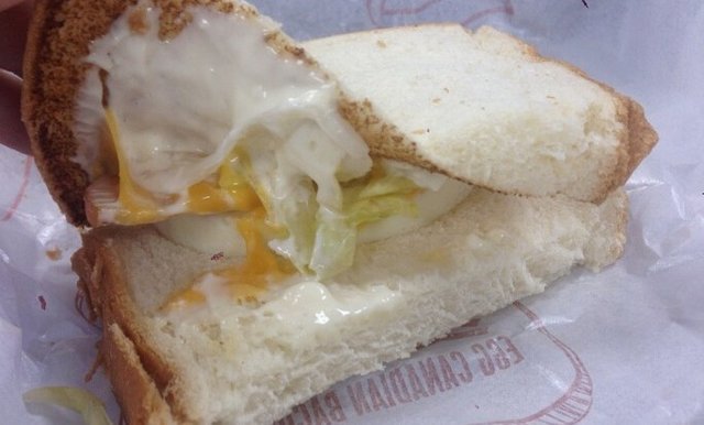 麦当劳支付宝免费换的新出的汉堡!哈哈哈哈哈 就是两块面包夹一起!中间嫩鸡蛋和烟肉一些生菜!不难吃!份量好小小小小!一个套餐12元加一杯豆浆或者咖啡选择!反正就是好坑就对了!…查看更多