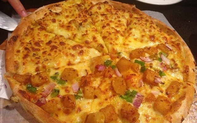 第二次光临喇!6点下班赶紧的过来!没想到等了半个多钟头才有位置!而且位置是在外面!!!没错,你没听错,是在外面!!!外面连个灯都没有,而且蚊子超级多!多!多!!!!跟服务员反馈了,也就那样!直接说要在室内吃!服务员也很爽快的给我们安排座位!提前在外面等位的时候就点餐了!即便坐下来还是要等等等!!!折腾了一个小时才上榴莲披萨,榴莲披萨拼新出的土豆披萨,土豆披萨是有点辣,皮薄,好吃!这次加量榴莲肉,感觉没第一次吃的那么有味道!加量榴莲肉也不见的多!可想而知不加量榴莲会不会基本没榴莲???…查看更多