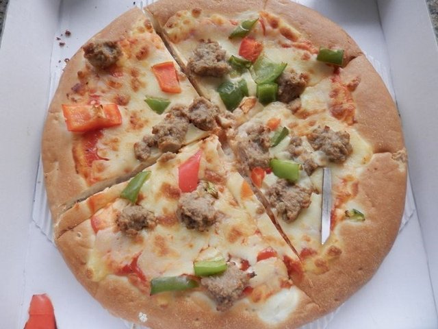 牛肉粒披萨 萨莉亚 (东急新天地) 2014-08-18老公经常会去萨莉亚意式餐厅买批萨。这个是牛肉粒披萨,皮脆,料很足:有彩色的甜椒和牛肉粒,老公当天买回家,第二天全家人当早餐吃了。味道挺赞的,牛肉粒咬下去软中带硬,甜椒维生素高,也不辣。小孩子吃得最开心了! :) …查看更多以上食记乃用户个人意见 , 并不代表OpenRice之观点。赞好分享牛肉粒披萨 萨莉亚 (东急新天地) https://s.openrice.com/KtLT0m0umqC00检举 张贴 评分5味道4环境4服务4卫生3抵食推介美食牛肉粒披萨用餐日期2014-08-07等候时间2 分钟 (外卖自取)用餐优惠团购