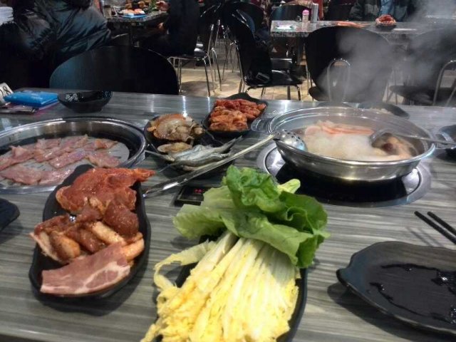 韩诚宫所处的地段算不错,但客人总体上比较少,也不知道是什麽原因。这里食物的种类不算多,可以选择的食材也是比较普通的食材。味道算可以,中规中矩,没有什麽亮点。饮料的味道就不太好,感觉味道有点怪,这里设有儿童游玩区,但也没有多少个小朋友在玩,有这个场地算是用心良苦了。店比较新,装修得一般般,环境卫生做得比较好,服务员很少,所以感觉服务不太好。可以给7分,一试也无妨。…查看更多