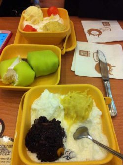 这家店在浦东非常的出名。。好多人都是慕名而来的。。。来的大多数都是情侣。。我们点的是榴莲班戟。。榴莲味相当浓郁可口。。我本人最喜欢榴莲了 虽然吃的时候肚子很饱 但一闻到榴莲味我胃口又大增了 把点的都吃光了。。好吃的甜品 以后还会来的…查看更多