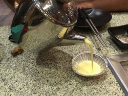 杨铭扬炻shi(二声),开始文盲了,以为念ta(四声),后来怕丢人,特意百度了一下才踏实,刚开的时候75折,酒水也不贵,离家离单位都近,还是用石板烤肉,日式风格,就去了~~按照点评的推荐,点了前面几种好吃的~烤肉是全程有人给烤的,其实这种形式很有争议,一方面人们可以不用动手徒享清闲,另一方面,大家都是跟朋友一起来的,很少有自己来吃烤肉的,跟朋友聊天又不是很方便,让人纠结啊~但服务员说,给我们烤肉是因为石板烤肉我们掌握不好火候温度,确实,在烤肉的过程中还有烤肉前,温度一定要用红外线测温仪量好达到标准才给我们烤肉~极上三筋烧肉和教皇肋条烧肉原谅我吃的时间有些长忘了哪个更好吃了,他们的酱料应该是有三种还是四种吧,那天跟人打赌吃饭不拍照真的是太耽误事了!!我喜欢味甜的那个酱料~大家都推荐彩虹芝士盒,其实我建议是人多了可以点一个,两个人吃一人一盘肉还得吃半盘芝士盒有些腻了,这玩意又不能打包,看着浪费直心疼,上面其实是沙拉酱和玉米放到炸好的豆腐盒上~一开始石板还不太热的时候放的蛋挞很新奇,甜品在一开始就上来很开胃啊~蛋挞味道不错,毕竟是现烤的,点个赞~总体价格还是略贵,两个人打75折还得人均80,虽说是好肉吧,但吃多了毕竟肉疼~…查看更多
