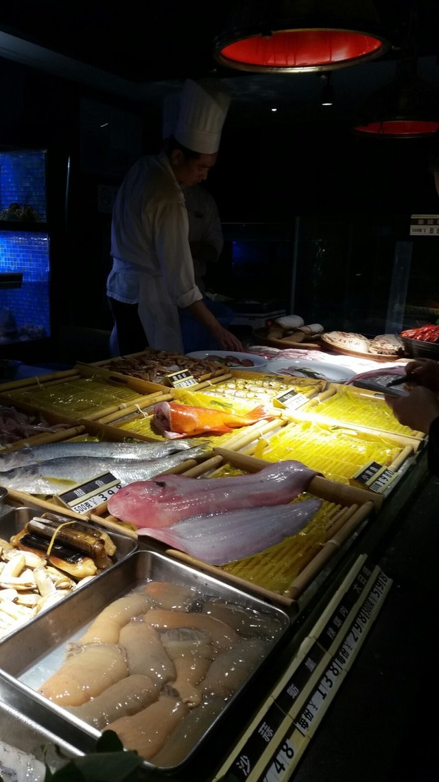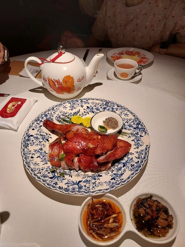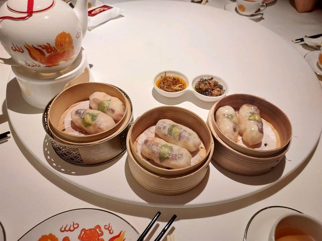 失驚無神,人吔71參加免费活動,我就北上,目的地萬象城,一出地鐵露天,書城,再行入去,第一棟,全是食肆,地下韓國食店,多年青人排隊,不是我杯茶,又行吓兜下,入咗大商場,大名牌店,有餐廳指示,其中就是潮上潮,跟住指示上上落落,問吓,终於在一幢獨立小樓找到,見到一個6-7呎紅色旗抱接待小姑娘,看過餐牌,點心约$40左右,合適,其實食完離開時候,在剛剛地鐵站出口直入巳見到該小樓。餐廳最吸引,用玻璃樽盛載大大隻花膠,黃燈背後,向前向後,透射,好似發光燈籠