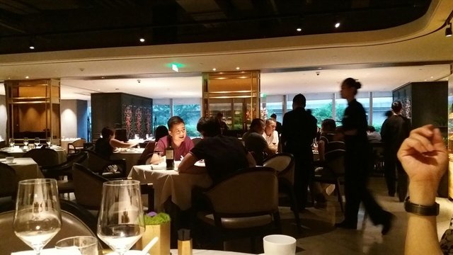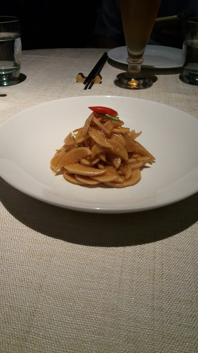 ,特顯名貴,提升餐廳级數。侍應倒少許水在晶莹玻璃碟內白色毛巾(上面一片小葉點綴-清雅),毛巾即時變軟,抹抹手,心一點舒暢