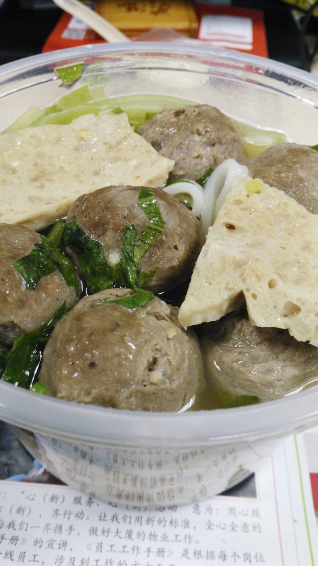 外卖快餐,不知环境如何,但是服务没什么问题,送餐速度快。点了个牛筋丸粉,总体味道比较清淡,汤底咸淡适宜,没有很重的味精味,大份的比小份的多三颗肉丸,价格相差四块,牛筋丸没有多少牛肉味,也不是很弹牙,而且口感还有点粗,不筋道。粉不是米粉,而是河粉,这个店家没注明,我本来以为是米粉。这个河粉很一般,一夹就断,没有韧性,也不嫩滑,不是薄的那种河粉。作为快餐,随便吃吃还行。…查看更多