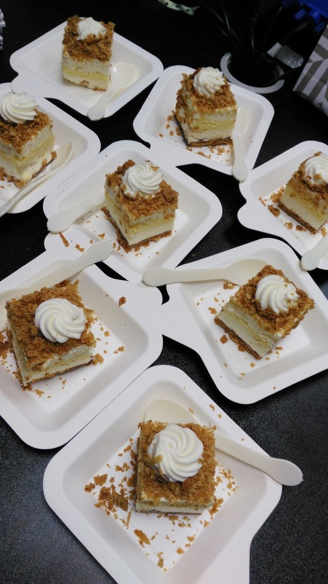 蛋糕店搞活动,同事申请的一个蛋糕,预定好,有专人送货上门,还给在我们品尝的时候做一些介绍,这个新的推广方法还是不错的,能有一定效果。送来的是原味拿破仑,蛋糕专人帮我们分切好,切摆得比较漂亮。试过,觉得蛋糕口感比较清淡,是低糖的,比较健康,吃起来一点不腻,蛋糕口感也比较细腻,有机会还会帮衬。…查看更多