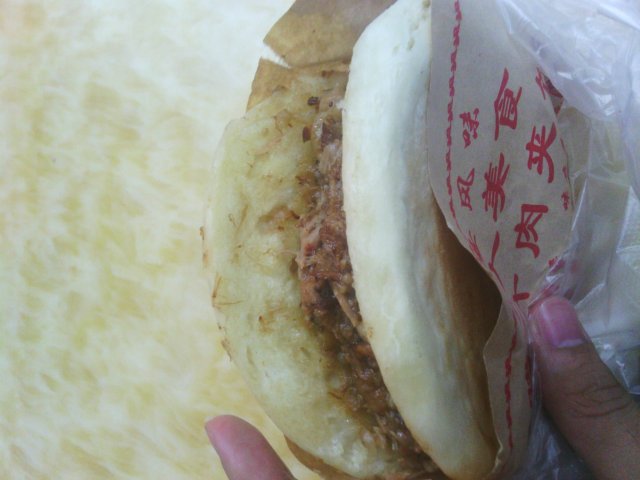 在西安待三年的我,会常常怀念那些凉皮、肉夹馍 加冰峰的标准配置!路过这家店看见肉夹馍的招牌就不由的进去了,凉皮我没吃,天气又点冷,店里也木有冰峰卖! 就让老板来了个肉夹馍,肥瘦的那种!可是一看老板做就傻眼了,馍居然是用面包机跳出来的,肉剁得也不是很好,还有最精华的就是那肉汁也不是很想纯!也是,毕竟这是广州!吃起来虽然没有以前的那种酥脆,入口溢满汁的感觉!但是还充满着无限的回忆!…查看更多