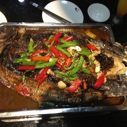 江边城外巫山烤全鱼 这家店是从北京开到上海来的,一进入上海后就来一股烤鱼热。要吃到它家的烤鱼可是要下午就来拿晚上的号,否则晚饭时间肯定吃不上。它家的烤鱼种类很多,个人比较喜欢它家的鲶鱼,鲶鱼个头很大,非常适合人多的情况下吃。它家的双椒口味的烤鱼非常不错,鱼肉烤的外脆里嫩,鱼肉吸收了汤汁的味道后非常美味,里面搭配上红辣椒和青辣椒后使得整个烤鱼口感更丰富好吃。…查看更多