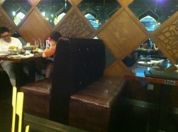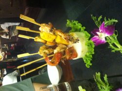 不错啊~挺好吃的 泰妃阁 2013-06-23今天去了泰妃阁,一直听说这家店的菜不错,而且网上还有团购的,不过我还是没去过,而且因为是泰国菜,不知道和我口味么。这个礼拜终于下决心去了。想看了看网上有没有团购,发现有3-4人餐还有多人餐,不过我们是两个人,所以当我看到有85买100券的时候犹豫了下,不过我后来又发现有满99送一个菜的活动,菜价值59,于是乎还是决定送菜吧。我们点的还蛮多的,有串烧拼盘,木瓜炖雪蛤,猪颈肉,榴莲酥,雪媚娘,特色炒饭等等。吃下来觉得多数都蛮好吃的。比如猪颈肉,不是特别肥,还是满嫩的,站的酱料是酸酸的甜甜的,不是话梅酱但是也蛮好吃的。可以中和猪颈肉的油腻感。串烧拼盘上面写了必点,于是我们就点了试一下,果然还是很不错的。有7串貌似,有菠萝,猪颈肉,扇贝,大虾等等,大虾是开了背的,所以比较入味,很香很鲜美。菠萝甜甜的咸咸的还有点辣辣的,非常的特别。猪颈肉和点的菜差不多,不占酱料也蛮好吃的。扇贝的味道也蛮不错的,这个是挺值得尝试的。木瓜炖雪蛤一整个木瓜非常合我意,样子也蛮好看的,里面是白白的雪蛤,不过感觉雪蛤有点粘牙,可能掺了别的东西,不是纯雪蛤,糖水比较甜,不过木瓜真的还蛮好吃的。榴莲酥很不错啊,虽然有点油,但是当吃到里面的榴莲的时候好满足哦~~吃甜品就是这样。炒饭比较一般,我们点多了,也有可能是吃不下的关系,我觉得不好吃就吃了一口。:(总体来说还是很不错的一次就餐。以后还会去的。环境有点昏暗,吃完我好想睡觉啊…………对了服务比较一般,基本服务员都不收盘子的,要自己呼叫。…查看更多+ 3以上食记乃用户个人意见 , 并不代表OpenRice之观点。赞好分享不错啊~挺好吃的 泰妃阁 https://s.openrice.com/KtLT100YXK600检举 张贴 评分4味道4环境3服务4卫生4抵食推介美食串烧拼盘¥68木瓜炖雪蛤¥38木瓜炖雪蛤¥38榴莲酥;串烧拼盘;用餐日期2013-06-22人均消费¥110 (晚餐)