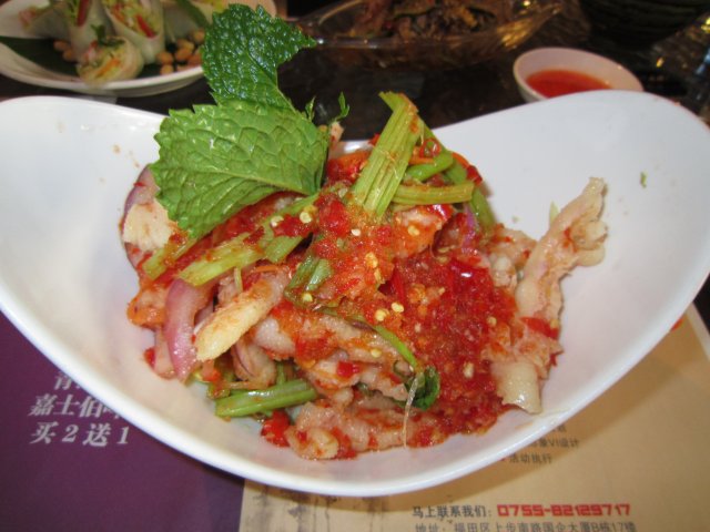 鑫泰 - 泰国菜 YES THAI鑫泰 2010-08-08 终于找到一家好吃的泰国菜,很给面子它没有让我们失望,就连会员卡也立马给办了。1. 泰式酸辣凤爪 (42/碟) : 看样子都覚得很辣! 而且咸,我们要叫服务员給一碗水来洗一下才能吃,马来爸爸的酸【甜】凤爪比较合口味。2. 越式大虾米紙卷 (39/碟) : 一道清淡的冷菜,剛好在吃辣的时候可以中和一点,里面的蔬菜很爽脆,外面的皮有韧性,两个搭配起来很有嚼头。3. 泰式酸辣鱼皮 (22/碟) : 跟凤爪比这个菜就不会很辣,鱼皮也很爽脆,很有口感。4. 串烧孜然羊肉串 (32/兩串) : 烧得很香,羊肉也很嫩,不会太熟,没有膻味。5. 咖喱皇炒大虾 (89/碟) : 咖喱汁煮得不錯,可以用跟歺的法国面包条点来吃,不用米飯也可以;虾是甪河虾来煮,也是煮得很嫩,不会太熟,不过河虾有时候会有很多黑色的虾子黏在爪上,没有清理,卖相不好。6. 榴莲布丁 (18/碟) : 好滑,不过榴莲味不够。食後感 : 可以再光顧的泰国菜! …查看更多+ 2以上食记乃用户个人意见 , 并不代表OpenRice之观点。赞好分享鑫泰 - 泰国菜 YES THAI鑫泰 https://s.openrice.com/KtLT0W0hWi000检举 鑫泰欢迎您 鑫泰感谢您的一路支持与惠顾,我们会不断的提高我们的服务质量和出品质量,希望您的下次光临我们能更好地为您服务!2011-04-14 回应 张贴 评分4味道4环境4服务4卫生3抵食推介美食越式大虾米紙卷泰式酸辣鱼皮串烧孜然羊肉串咖喱皇炒大虾榴莲布丁泰式酸辣鱼皮,串烧孜然羊肉串,咖喱皇炒大虾用餐日期2010-08-07人均消费¥125 (晚餐)