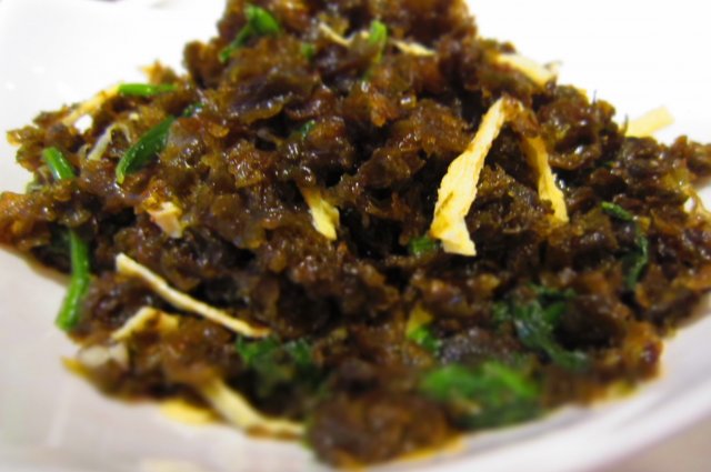 安徽菜達人 醉翁亭 2010-09-05 一栋商务大楼的3楼,竟然有那么好吃的安徽菜,怪不得它那么出名;歺厅装潢就是一般的中菜,但是吃下来很有回到老家,乡下地方吃飯的感覚,回味無窮啊!连価銭也很便宜,菜的份量也教人惊讶,简直是不惜成本来滿足您的食慾。最搞笑是服务员都说我们点菜点得太多了,一定吃不完,最後真的是一大盒一大盒拿回家吧! 為了給大家介紹多一点它们的好菜,我们也来过不惜成本呢!1. 鳮毛菜拌毛豆 (14 / 碟) : 家庭式的凉拌小菜,很温馨。2. 地踏皮 (18 / 碟) :“地踏皮”生长在地面草丛中,颜色深绿,介于紫菜和木耳之间,形状、质地似木耳,因紧贴地面生长,故名“地踏皮”,虽然谈不上是什么矜贵的菜,但是却有养生的功效。3. 好心肠 (9 / 碟) :鸭爪子是腌制过的, 有一種很浓的臘肉香味,但不咸,捲着爪子的肠子也能吃,不能放过;拆开以后,原来里面还藏着一个腌制过 的鸭肫,味道也同样的香浓。4. 瓦罐馿肉 (38 / 碟) : 俗话说,天上龙肉,地上驴肉,当然不能放过。驴肉焖的很烂,味道有一点像牛肉,却又比牛肉软嫩一些,嚼完了也不会担心拤在牙缝里面,再配上很爽口的荸荠,口感好极了。5. 小鸡贴饃 (49 / 碟) : 又是一道温馨的家常菜,山芋粉丝和软滑鸡块一起炖,两样东西的味道充分融合在一起,加上一点点的辣,非常的惹味,馒头还可以沾上汁来吃。6. 醉翁醬排 (56 / 碟) :美味当前,可惜只有一个肚子,容量有限呀!看上去和普通的排骨差不多,咬下去却是另外一种味道,用了它们的秘制酱汁,很难形容,大家亲身体验一下就知道了。食後感 : 此菜只应天上有,难得人间几回嚐!…查看更多+ 3以上食记乃用户个人意见 , 并不代表OpenRice之观点。赞好分享安徽菜達人 醉翁亭 https://s.openrice.com/KtLT0W0eWu000检举 Sunny-liu 图片照的好好看啊好心肠??看起来听特别的不知道吃起来怎么样 2010-09-06 回应 张贴 评分5味道4环境4服务4卫生5抵食推介美食鳮毛菜拌毛豆地踏皮好心肠瓦罐馿肉小鸡贴饃醉翁醬排瓦罐馿肉,小鸡贴饃,醉翁醬排。用餐日期2010-08-28人均消费¥108 (晚餐)