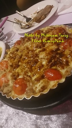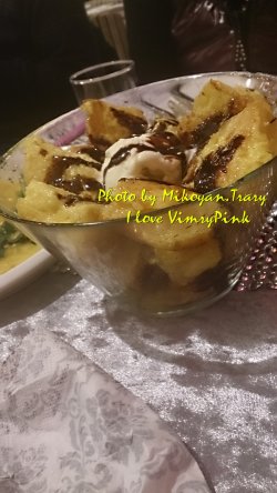 宝山万达在宝山地区还是属于比较繁华的地带,在宝山万达吃过的餐厅也数不胜数,但是对这家店情有独钟,去的时候是下雨天,踏进宝山万达直奔3楼,几乎绕了3楼一大圈看了商场地图还是没找到这家店,兜兜转转在金街外面看到这家店,门面很温馨,但是踏进这个店除了第一眼温馨就是他们家的地板实在太滑了,可能是下雨天的关系吧,店面不大,但是有点小清新的感觉,主色调是紫色让你有种回到家的感觉让人身心很舒服,老板刚大学毕业,估计老板和老板娘很喜欢宠物吧,墙上都挂着狗狗画像和I ღ 丽海字样的灯牌,!『巴黎香艳』 ღ 到店立马来了一杯暖暖的花茶在寒冷的冬季带来无限暖意,花茶淡淡的清香 ,散发出阵阵的果香,花茶带有略微的粉色,打开茶盖里面有水果的颗粒和少许的花茶茶叶,甘甜而不腻的花茶应该很受女性和小朋友的欢迎!『黄桃鸡肉串』 ღ 很入味,黄桃的果味已经进入到鸡肉里面的,鸡肉很嫩,黄桃水水的,黄桃经过加热之后更有一种想不到的酸甜味,摆盘也很精美,一块黄桃一块鸡肉连串着,放入口中,一起咀嚼在嘴里,酸、甜、咸三种不同的香味弥漫在口中,上面还撒了一点面包糠炸过的小颗粒!『马铃薯派』 ღ派一上就感觉它很管饱,店员和我们说建议这个用勺子挖,轻轻地用勺子挂了一块就呈现了拉丝的状态,丝可以拉得很长,入口激化它底下是土豆泥,粉粉的加上牛肉小颗粒和圣女果的搭配,那么多菜里面Miko是最喜欢吃这个道菜,本来就爱吃土豆泥、牛肉的我,怎么可以错过这道菜,粉粉的土豆泥上面,包裹浓浓的Cheese,那真是好吃的没话说,只能乖乖地翘起大拇指!『暖暖沙拉』 ღ沙拉里有香蕉、黄桃、菠萝、圣女果、紫甘蓝等蔬菜、水果,上面的酱好像是酸奶调制出来的,不会像色拉酱一样那么腻,上面撒着炸过面包糠的小颗粒,水果蘸着酱撒点面包糠放在嘴里,卡兹卡兹的声音,吃完油腻的菜再吃换个也是很解油!『巧克力蛋奶蜜多士』 ღ巧克力蛋奶蜜多士就是原来巧克力厚多士,只是炸了一下没炸得很脆,然而软软的有点想炸鲜奶的感觉,上面浇上巧克力酱中间还放着一个香草冰激凌,吃的时候沾一点冰激凌,冰冰热热的蜜多士在嘴里融化着不过比较又是巧克力又是冰激凌还是少吃为妙!『盎然咕菇鸡』 ღ这个菜没什么特别的就是红烧鸡肉外面围了一圈貌似菜心,鸡肉很嫩,菜心很爽口,不是很油腻!『麦克兰双拼排骨』 ღ其实就是炸排骨,就是他们的酱料很特别,有四个酱料分别有黑胡椒酱、麻辣酱、香辣酱、甜辣酱,这道菜上菜的摆盘就是像拱桥一样,排骨表皮很脆,按个人的口味添加自己需要的酱汁,风味独特,Miko还是喜欢黑胡椒酱,脆脆的排骨沾上微辣的黑胡椒酱那就是一个绝了!『蟹粉菌菇泡饭』 ღ蟹粉菌菇泡饭顾名思义里面有蟹粉和杏鲍菇的菌类还有一棵很大的大树(西兰花),吃口就是一个字“鲜”,不知道是真的蟹粉那么鲜,还是高汤调出来的,但是建议不要放冷了,冷了就会很腥哦!他们家服务态度很好,很主动的加水,也会很耐心的回答你每一个问题,宝山万达里面有这个店还是很不错的,还是会再次光顾的,最后老板还送了补丁,有香草、咖啡、芒果等味道,建议还是有一个指路牌,第一次去的人肯定会找很久的,其他都很不错,店面虽然小但是很温馨,很不错的一次聚餐,赞一个!…查看更多