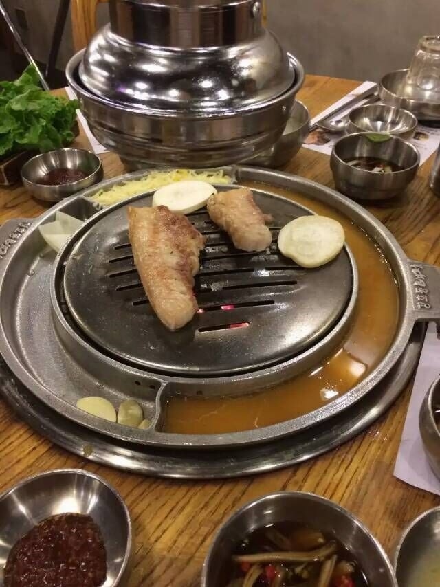 不是说他出品不好,只是名大于实,名次把它给虚高了,餐具完全没有洗干净,杯子有黑色点点,勺子竟然有食物残留物,我们用纸巾擦一遍才能用,点了饭跟烤五花肉,五花肉很好吃,不用沾酱都够味,肥而不厌,烤炉旁边的就是芝士玉米和煎蛋,芝士玉米好吃,煎蛋已经很老了,而且没味道,调味护心肉的味道有点像叉烧。…查看更多