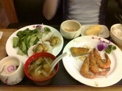 中午公司附近的一家日式料理第一次去的时候点了铁板烧海鲜套餐感觉蛮好吃的,尤其是铁板烧很入味味道超级好的,有三个大虾和一块三文鱼,还有两个扇贝相对来说还是蛮优惠的价格很有竞争力前菜的色拉很大一盘,色拉酱味道也不错的有机会可以来尝试下晚上的放题自助…查看更多