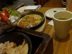 和朋友聚会中午来这里吃饭三个小姑娘点了2人套餐加了一分甜品吃的酒足饭饱,超级满足的一份色拉,一份三文鱼籽饭,一份炸鸡脆骨,一份刺身,一份猪排,还有一个牛肉火锅两瓶超级大份的饮料如果不是三个人的话估计吃不下这么多最好吃的就是三文鱼籽饭了,有点石锅饭的感觉但是更香更好吃就是量有点少,那个盒子非常占地方牛肉火锅也是最好吃的之一啊~甜甜的牛肉…查看更多
