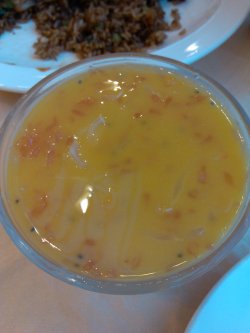 第一次来这家,看着装修还不错的样子,人多的上菜超级慢......上菜顺序奇葩的哦,按顺序一个一个介绍先来了炒饭,好大一份炒饭啊,有广式香肠甜甜的有嚼劲口感不错然后就来了杨枝甘露....我一口血啊,吃了饭就上甜品啦,我点的菜呢?然后是炒河虾,油太重,虾倒是蛮新鲜的,略甜然后就开始上了凉菜,一个是凉拌的牛肉,油腻腻的,牛肉不多,底下铺的全是黄瓜....最后压轴的两个盅,一个是经典粤式黄烧的鱼,肉质很嫩超滑口。还有一个是鱼丸,鱼丸软软滑滑的,这个我喜欢。…查看更多