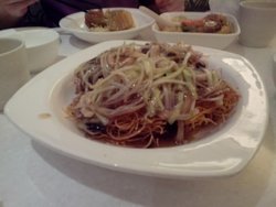 在陕西路的巴黎春天里,出了一五一拾就是了,其他没有什么推荐的,喜欢吃里面的两面黄,记得小时候吃过这个味道的,面脆脆的,每一根都是脆脆的,放上了肉丝浇头,这个浇头的汁水浸在面条里,那个真是鲜美啊,一碗面条的量很大的,2个人因为还点了其他的才,这个面条吃也吃不下呢!…查看更多