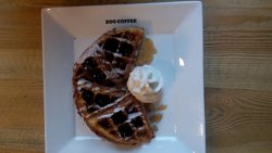 宝宝一直想去,结果放假就带她去了,新口味的莓果摩卡不错哦,味道很浓厚的,店员说摩卡里没有咖啡的,就巧克力,就给宝宝喝了,还点了莓果华夫饼套餐,宝宝吃得可开心了,拿一点奶油沾着华夫饼吃,味道甜而不腻,不错的哦!套一杯餐里还有一杯咖啡,老公喝了,虽然咖啡喝味道和星巴克也差不了多少,但是和这个环境就和适合带着孩子一起泡咖啡了!…查看更多