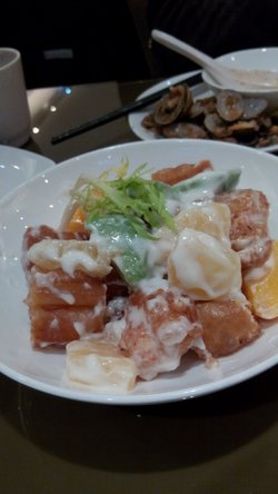 第一次去吃,说可以用美团的券,100元买88元,于是当场就团购了一张,点了碎皮乳鸽,鸽子很嫩的,皮真是是脆脆的,味道不错,炒花蛤,味道就点辣辣的,花蛤的肉很嫩的,招牌菜油条菠萝油条虾,外面淋了色拉酱,还有一点水果,油条里面塞了虾肉,挺有创意的…查看更多