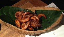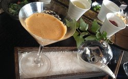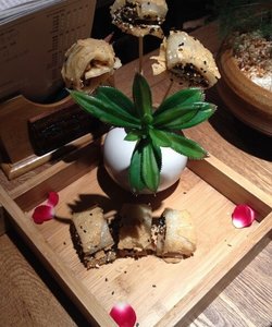 地段不错,徐家汇这里,太平楼百货一楼电梯直达,服务员态度蛮积极的,值得表扬。环境相当好,就是桃花山庄的感觉,装修花了一番心思啊。周三中午去的,以为不会太多人,没想到等了一个多小时。两个人,消费了195,有点小贵,每个菜造型都非常别致有特色。爆浆甜筒沙拉,里面的水果挺好吃,外面的甜筒也脆脆的,两只起卖,但是甜筒插在脆米粒里,下面的脆米粒是装饰物,可不能吃哦。一桶奇味虾,我感觉就是上海菜里面的元宝虾,脆脆甜甜的,挺好吃。孜然菠菜很有特色,可能由于菠菜比较生,吃不出菠菜的味道,还能清爽的一个菜。香葱吴山鸡,稍微有点辣,但也挺好吃。红糖麻糍很有嚼劲,里面芝麻、糖之类的没少放,但是吃了蛮饱腹的。越式文火小牛肉,原本最期待的,没想到最后相当失望,虽然做得浓油赤酱,甜甜的很像本帮菜,但是牛肉也太老了吧,嚼得好辛苦,还卡牙缝。哎...总体不错!…查看更多