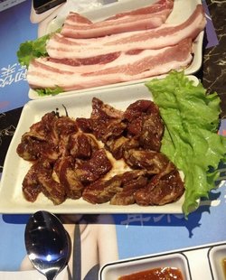 真的是非常满意的一餐,很韩式的风格,性价比挺高的,2个人消费一百二十几。车子就停在门口,店家说不会被贴牌。附加产品蛮多的,先是有6个小菜吃,其中的蔬菜色拉和土豆色拉,还有一个类似麻薯的东西都好好吃呀。后来还送了大酱汤,烤盘周围倒了蛋液,最后可以吃炖蛋。点了芝士芝心年糕、五花肉、牛小排、泡菜饼,每个都非常好吃,真的是吃醉了,服务员态度也是极好的。…查看更多