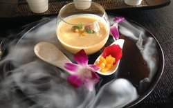 (1)环境:门面不是很气派,比较小,不大气。店堂环境感觉很拥挤很小,里面也不是太明亮,靠窗的座位景观还不错,能看到东方明珠。(2)服务:店员都是蒙面造型,服务态度很好,每道菜会耐心解释和吃法。一有问题,一喊就来,响应度很高,比较满意。(3)口味:真的如之前有些人点评的那样,华而不实。每道菜造型都可以,但是味道真的不咋滴,也就只能觉得好玩尝试一次而已。先会上茶与送小菜,每个人三小盘小菜,女士与男士倒茶的杯具不一样。每个菜的名字都很花哨,记不全了。土豆泥好吃但是量少,招牌牛腩有点偏辣,杨枝甘露没觉得有什么好吃,价格还超贵。布丁装在茶壶里,造型好看,但是布丁都刮不干净,浪费了好多。这种就是一次性的店啦,好玩是挺好玩的,邻桌点了一个白色巧克力球,淋上黑色巧克力酱,会开花的。还有人点了一个不知道什么菜,服务员会让他翻牌子,总之都挺好玩的。…查看更多