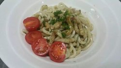 帝璟西餐厅这家店是外出办事后无意找到的一家小店,店内干净卫生,服务员也很热情。点了奶油意大利面,面条感觉略有点粗,不过口感有弹性,搭配上浓郁的酱汁和些许西式调料后更美味好吃。店家还特地在意面边放了些许小番茄,看着更有食欲。…查看更多