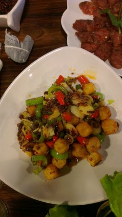 三千里,高丽高,还有另外一家烤肉似乎好像是同一个公司的。前一段时间三家联合做活动,每家都有特价菜,如果不点特价菜,还可以打折。看到有便宜的肉肉当然不能错过啦!每次烤肉必点的就是五花肉,把肉烤到稍微焦黄,配上辣椒段和蒜片,卷在生菜里,肥而不腻,完全感觉不到是肥肉,自己一个人可以消化掉一盘五花。还有一个牛肉,已经忘了叫什么名字了,大概是雪花牛之类的吧,也很好吃。我是一个对肉肉完全没有抵抗力的人,所以只要是肉就会毫不犹豫的收入肚中。还有鱿鱼也很好吃,看着鱿鱼须慢慢卷曲,很有成就感。还有杏鲍菇,土豆片,红薯片,都是烤肉必点。只是,有点儿搞不懂的是以前在老家吃的所有的烤肉都是用“韩式辣酱”作为蘸料,但是在北京吃了好多地方,都是用醋和糖调的汁,如果要韩式辣酱需要单加钱自己点。…查看更多