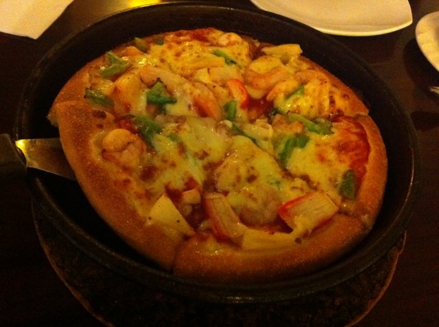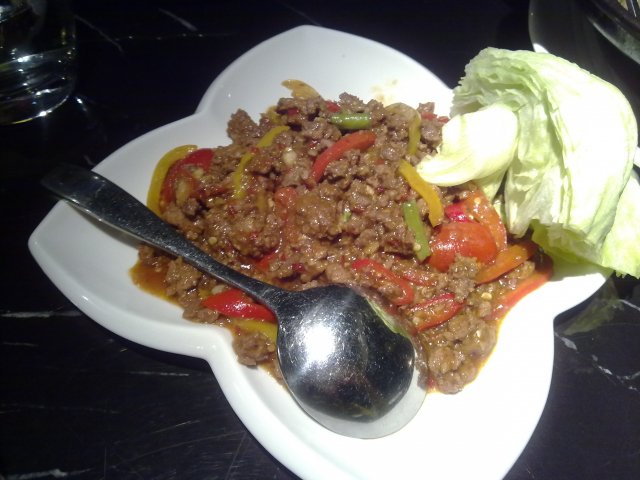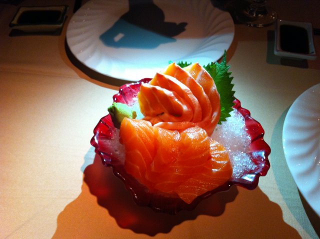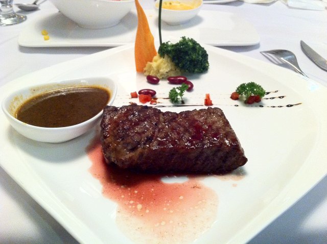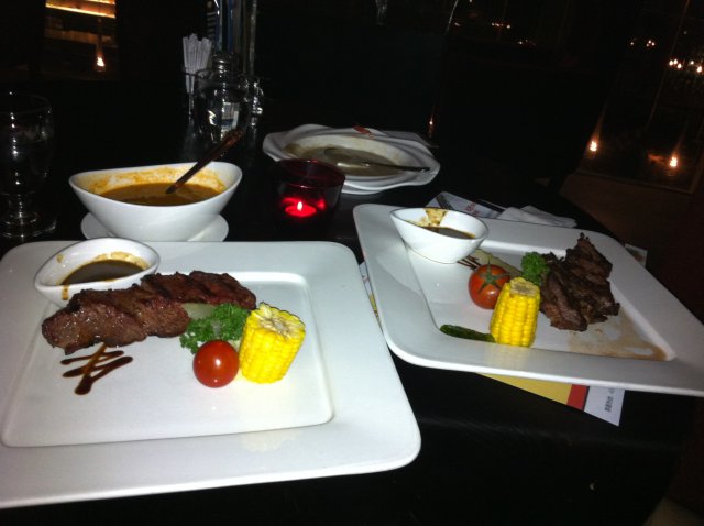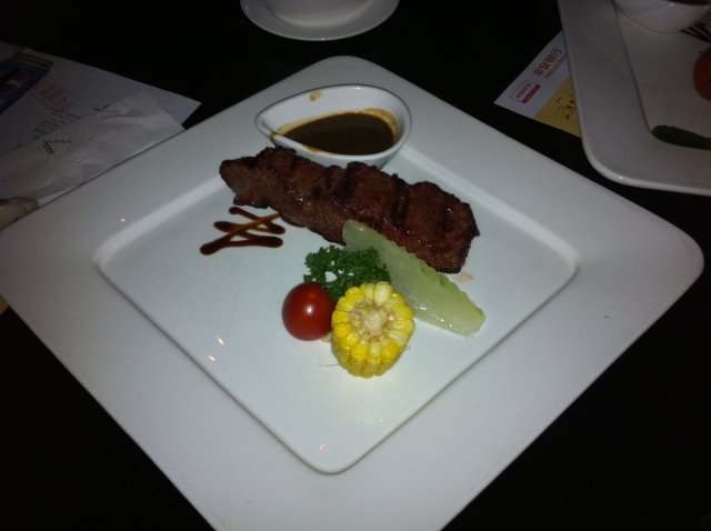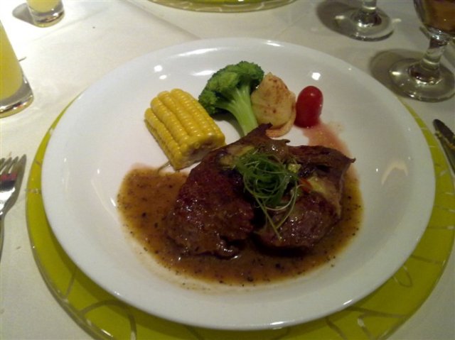 厨房制造,别名:超级牛扒金光华店环境幽暗,大厅中央的走道设计得像T台,洗手间是独立的太空舱,真有FEEL出品丰富,中、西、日、泰式皆有!吃过西餐,很不错,果木牛扒系列是招牌吃西餐有自助面包、沙拉和水果,免费任吃。当然价格不便宜,要加收10%服务费。幸好我有中行信用卡,享有五折优惠,加上服务费相当于六折咯!(服务费不打折)眼看2011就要过去了,最后一个周日还是去奢侈一下,这可是最后一次优惠了。照旧点了最爱的三文鱼腩出品很新鲜,每一片的薄厚都切刚刚好,非常诱人,入口结实饱满,口感甚佳。沾上香味酱油与青芥末调和在一起的配料,那种呛鼻的感觉,好刺激,好过瘾。果木牛扒是这里的招牌点了果木熏牛小扒,配上黑椒汁,七分熟,小带肥肉挺有嚼劲,很嫩很香。烤羊扒服务员极力推荐,说近期挺多人点羊扒,客人反馈都不错,口啤极佳。试了一试,味道果然不错,闻起来很香,吃起来很抢口,真的很独特。这里环境幽雅舒适,气氛又浪漫,一餐足足吃了两个小时。哈哈...感觉真好~…查看更多