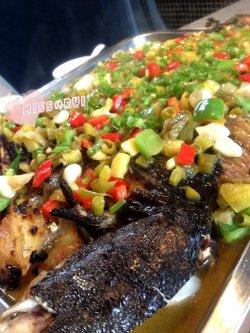 烤鱼如今真的是遍地都是啊。。话说最红的么还是江边城外咯个么看到这个新的有团购。我也就参与了一下地处亚龙国际,交通还是很方便的。离南京路和淮海路都很近的地方地铁,公交。都方便。地方还是相对慢大的。我是中午去的,事先当然也约过位置啦~装修的一般般,但是也有自己的特色。我们点了八爪鱼和鱼皮,作为冷菜。不过这个冷菜真心很小份哦。。。不过八爪鱼很好吃啊。。就是不经吃。。太少了啦鱼皮很爽口。。作为冷菜,先过过念头不错的说鱼我们点了鲶鱼。现在么鱼都很大很重的。。然后配料我们点了四份,MS只能点四份的说鱼烤的还是不错的说,味道慢入味的。。不过他们家的东西都有点小辣啊。。吃冷菜的时候深刻觉得哦。。然后赶紧点了饮料。。冬瓜茶什么的不过冬瓜茶有点甜啊。。。不过还是可以解辣啊。。。辅料MS放的阿不是很多呀。。不过一条鱼下去。也差不多啦。。然后我们还点了海带子。。嘻嘻,他们家扇贝什么也都有的海带子的味道还是相当美味滴。。对于烤鱼店来说。我觉得他们家的品种算相当多了冷菜也慢多种类的,加上各式的烧烤,不错的选择。不过冷菜量在大点就好啦。。最后MS算下来价格啊不是很便宜吗。。还是我们胃口太好了???…查看更多