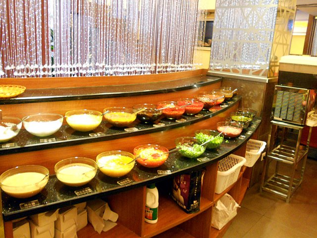 去吃了的群童鞋回来说三文鱼怎样的新鲜怎样的不限量,搞到我这三文鱼控也hold不住啦,虽然远在番禺还是当一日游带妈妈去吃了这次。坐完地铁三号线跟着又转公交去到光时间就用了1个半小时,餐厅不算多大,但装修的很典雅,主要分为熟食区,刺身区,甜点区。这里刺身看上去就很舒服啊,三文鱼是切好一盆放在那,还有鲷鱼,希鲮鱼,象拔蚌刺身。 首先当然是拿三文鱼啊,切的很厚,很新鲜,点芥末酱日式酱油入口很鲜美,妈妈吃生食不行几乎算是陪我来吃的,我帮她拿的虾仁芹菜和葱烧海参,海参好肥好厚,不是水发的的那种,虾仁也很弹牙,吃了一会看有人排队,但又没见东西,问服务员要等一会才出来,原来是排队拿三文鱼腩,哇,正啊!我都赶紧排。毕竟三文鱼腩更加肥美的啊!所以要提醒没去过的友友,三文鱼刺身不限量指的是三文鱼肉,三文鱼腩是限量的啦,限量的还有蛋糕,服务员会发票给你,凭票拿的。这个自助餐主要的亮点就是三文鱼,其他基本都比较大众化,特别是寿司饭团大过料,蟹吃不出什么肉肉。烧鸡烧鸭没碰!中午正价108一位,团购89.9元要喜欢吃三文鱼刺身的才能吃回本哦,哈哈…查看更多