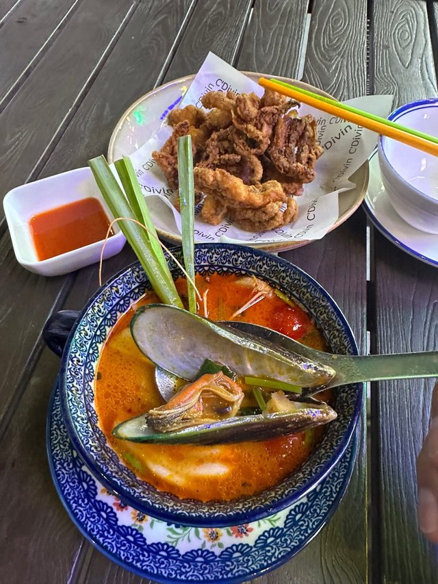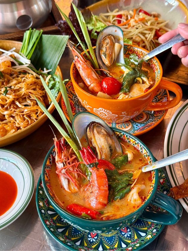 泰火冬蔭Mama麵喺泰國曼谷好出名 ถนนบรรทัดทอง 而家過海就有得食啦 飛機都唔使搭 ✈️ 好豐富材料例如大頭蝦 雞蛋 青口 豆腐 豬骨等等。湯底好濃郁,本身就係佢哋冬陰功湯湯底。最緊要係$100都唔使 🤭 佢哋好似有套餐 跟兩杯飲品都係百幾蚊。另外一碟就係泰式魚露炒椰菜,唔好以為好簡單一碟炒菜! 炒得入味有鑊氣,但係椰菜仲係好脆先難! 原來呢款食物係泰國家邊飯入邊必有嘅嘢。餐廳環境好好,好舒服!有好多打卡位 👍 播住泰文歌加上泰國裝飾,再加上好正宗泰國味道,真係唔使去泰國都得😉 泰仔話你知 🎈#enjoylife_man***5💋 is the highest***Feeling:💋💋💋💋💋Service:💋💋💋💋💋Yummy:💋💋💋💋💋Overall:💋💋💋💋💋…查看更多