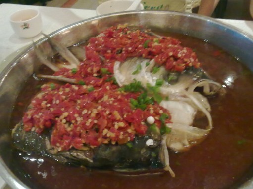 纯属路过此地,说饿了就随便找了家酒楼,为了下饭,选择了湘菜馆.其实所有的湖南菜都差不多,菜品咱就不说了,就说说这剁椒头。1。从外观上,这道菜还是很漂亮的,是不是应该放点:香菜!2。剁椒鱼头一定要配送:面或豆腐条,做为配食主食的补充,这样可以发挥这鱼头汤的余威。(这回没给送,是不是看咱人少的菜多就送了。)3。这种大菜还是要早点上,等都酒足饭饱了再上大菜,就没什么意思了。4。味道还行,可能实在是吃的多了,也不感觉有什么特别了。…查看更多