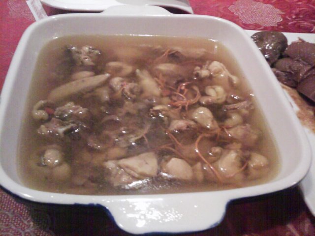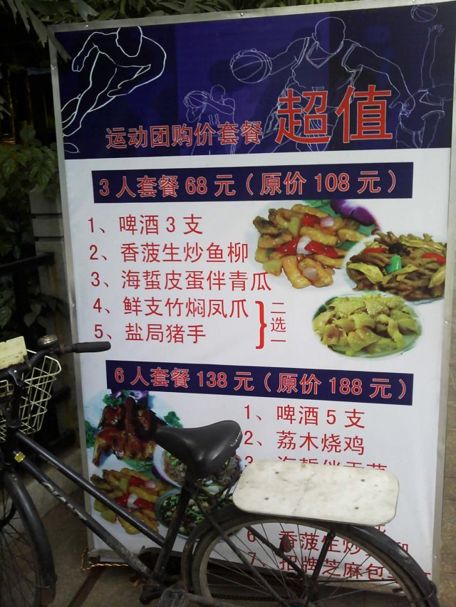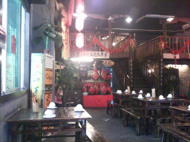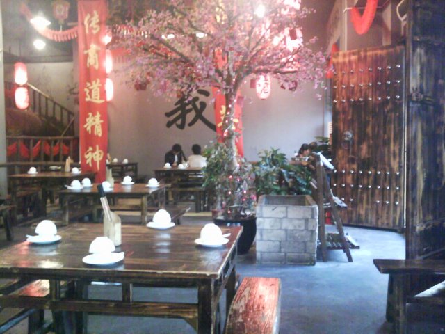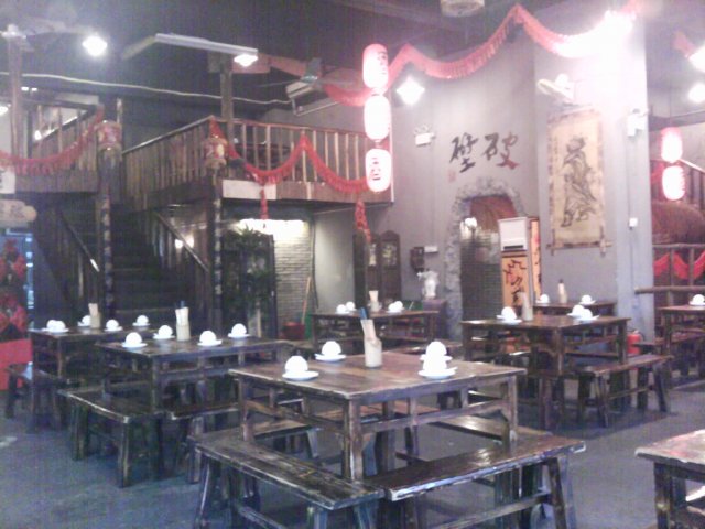 在网上团购了1个53元的套餐, 详细内容如下: 清补凉锅(1份)+ 三黄鸡(半只1.5斤)+牛柏叶(1份)约300克+牛肉丸(8个)+ 30度米酒(约4两)+ 有机罗卜 (1份) + 有机杂菜 (1份 ) +豆腐(1份)+姜葱(2份)+ 椒圈豉油(2份)+米饭(2碗)+ 茶(2位) 今天晚上和LP一起去消费. 按照网上的提示, 从齐富路口往白云新城的方向走500米左右, 就见到这家店了. 果然装修和武林片上的差不多, 有身穿古装的小二在门口招呼客人, 店里的伙计, 不分男女, 统一着古装, 都叫小二. 桌椅一律是八仙桌和长板凳, 整个环境颇为古香古色. 这家店提供的茶水, 他们称为“山寨茶”, 黑黑的, 分不清究竟是什么茶, 只喝出有山渣的成分, 味道不错. 很快就上菜了, 与装修相比, 味道只能是一般, 特别是肉丸子, 掺了很多粉, 一点都不好吃. 但从份量来说, 还是足够2位成年人的. 待我们7点左右结帐离开时, 店里已经有约7成的上座率了. 不过我们发现, 隔壁有家“人民公社”, 生意还要红火, 有机会大家可以去试一试.…查看更多