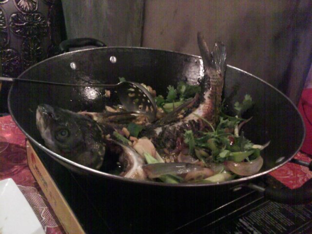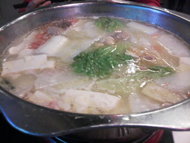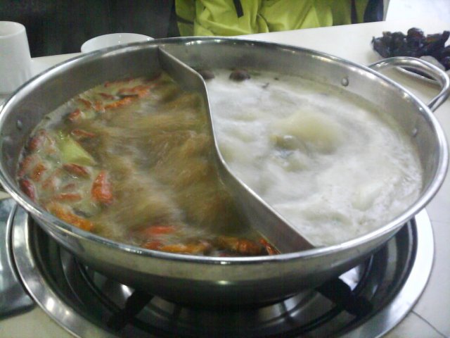 想涮火锅好久了, 今天晚上来到海珠客运站旁的这家酒楼, 因为参加了团购, 38元/人. 位置就在苏宁电器旁边, 2楼, 很大的落地玻璃窗上写着醒目的“老北京涮羊肉”字样, 不会走错的. 人还不少, 品种也齐全, 但都是便宜货, 不过看在38元/人的份上, 也认了. 鸳鸯锅中辣的那部分除了辣, 没有其他味道, 应该是+了食品添加剂的, 所以我们都只吃不辣的那部分. 连续作战了1个半小时后离开, 总的评价是吃得很饱, 味道不如小肥羊. 当然, 价钱也不如.…查看更多