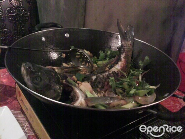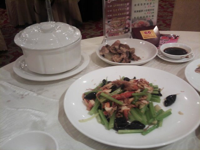 在网团购了它家的1个138元的套餐, 最近来消费. 地点很好找, 就在应元路的中段, 1家起码4星级的酒家. 茶市与饭市一起直落, 那天晚上生意不算好, 只开了1个大厅. 虽然桌子与桌子之间相隔比较远, 但依然很吵. 很快, 菜就端上来了. 比较搞笑的是, 尽管我们只要了2个白饭, 但因为套餐中包括4个白饭, 他们也不管你是否需要, 一古脑把4个都端给你, 证明没有偷工减料, 呵呵老黄瓜焖响螺汤: 很不错, 火候足生炒时蔬: 是油麦菜, 有沙子土芹鸡丝彩虹贝: 鸡丝没有多少, 所谓的”彩虹贝”, 其实就是本地象拔蚌. 这道菜还算可以, 分量足招牌手撕盐炬鸡: 没什么鸡味泡椒海虾: 比较辣, 不过, 虾是新鲜的, 个头不小美味蜂巢: 其实是糕点, 不算甜 总的来说, 这次团购, 不过不失…查看更多