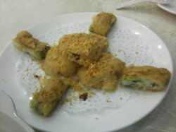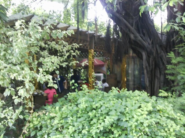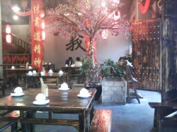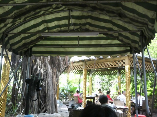 最近团购了它家的1份68元的套餐, 星期天正好与LP一起去消费.在南岸路公交车站下车, 走进青年公园, 左拐几十米, 就见到饭店了, 它家是利用公园的亭子和绿树布置成的, 我们达到的时候, 已经有不少老人在吃饭, 说话声音宏亮, 连在外面都听得很清楚.吃饭的地方就在亭子旁边的帐篷里(亭子里也是吃饭的, 不过已经满座了).鲜沙姜土鸡—根本就不是什么土鸡, 没有鸡的味道, 配的萝卜都没有软, 我们只喝了些汤, 鸡没吃多少口生炒鱼柳排骨—肉都是炸的, 味道感觉一般鲍汁鲜竹卷—还算可以冰镇八瓜鱼—很后悔选了这个(可以选择海蛰皮蛋拌青瓜), 就是从超市或批发市场买回来的日式八爪鱼, 再配些蕨菜而已, 味道比寿司店的差远了上汤浸时蔬—还可以凉瓜炖鸡爪—这个算最好的, 全部消灭了总的来说, 味道不怎么样, 而且必须要坐在正对空调的位子, 否则热死你…查看更多