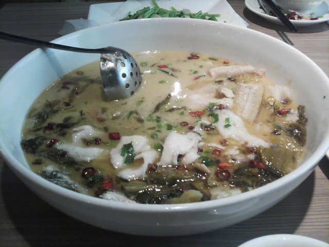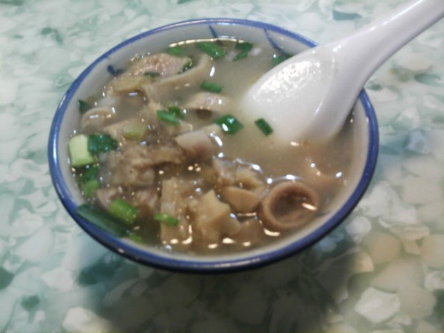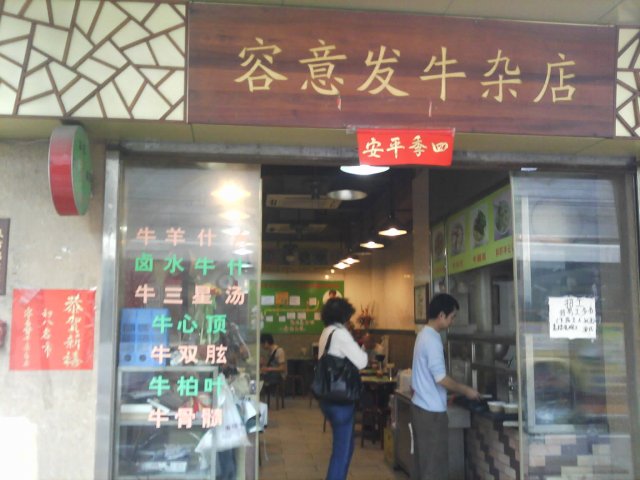 今天到诗书路附近办事, 完毕之后, 抽空到著名的“容意发”品尝牛羊杂汤. 来到的时候大概4点半左右, 里面只有2-3桌客人. 我照旧要了碗经典的牛羊杂汤, 9元/碗. 很快服务生就端了上来, 里面主要是羊杂, 还有萝卜酸, 份量十足, 不象某些店, 说是牛羊杂汤, 实际给你的却是牛三星, 牛肺等便宜货. 容意发出品的味道还是与以前一样的好, 酸酸的, 有点甜. 一碗牛羊杂汤, 就让我精神和胃口双饱满, 可以撑到晚饭时分了.…查看更多