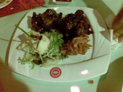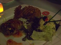 这里虽然不大,但是环境很好,很小资,比较有情调,适合情侣约会,朋友休闲~推荐他家几道菜:第一道菜是甜点,胡萝卜糕,主料糯米,配有一些坚果,很甜蜜的,个人觉得比较适合喜欢甜食的朋友。奶油蘑菇汤,口味和必胜客的比起来要强很多,味道很浓郁,相当的地道啦~ 吞拿生牛肉,生牛肉,小心翼翼的尝了一口,味道还不赖,牛肉软软滑滑的,没有生肉腥味,里面还配有蛮多的金枪鱼~美容蹄髈,原以为是猪蹄一类的呢,其实是肘子,口感偏甜,而且不腻,听经理说中国传统做法配上泰式的甜辣酱,算是一道很成功的中西合璧的菜肴~奶油烤生蚝,个头很大,芝士味道还是蛮浓的,好吃啊~蜜汁牛排,品相不赖吧,看着挺有食欲的,口感偏甜,因为烹饪方法的缘故,是十分熟,有点老~洋葱吞拿鱼批萨,虽然卖相一般,但是奶酪香,搭配薄饼是我的最爱~饭后甜点来啦,白巧克力芝麻蛋糕还有原味芝士蛋糕,外观上是一样的看起来是一样的,除了有点冰,口感还是不错的~…查看更多