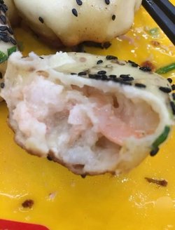 买了三份双拼生煎,黑芝麻的都是大虾口味的,白芝麻的是鲜肉口味的,大虾生煎是头一回吃,虾肉是肉眼可见的,并没有成为虾泥状,而是一小段一小段的虾肉,吃起来颇有几分港式虾饺皇的特色,味道也是可圈可点。…Read More